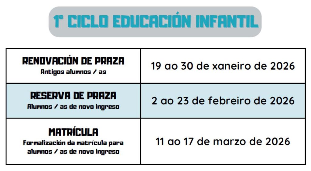 Aquí os dejamos el enlace al documento para hacer la matrícula para el próximo curso 2026-2027, para los niños de 0 a 3 años (primer ciclo de Educación Infantil). El periodo de nuevas admisiones se abre del 2 de febrero al 23 de febrero.