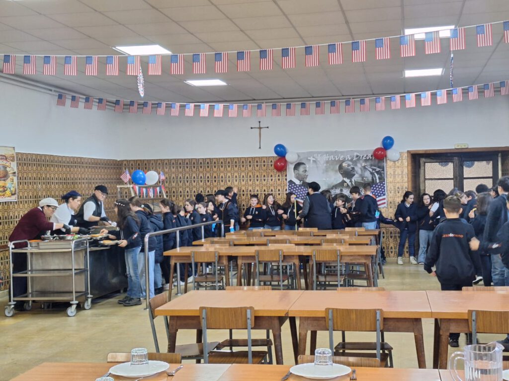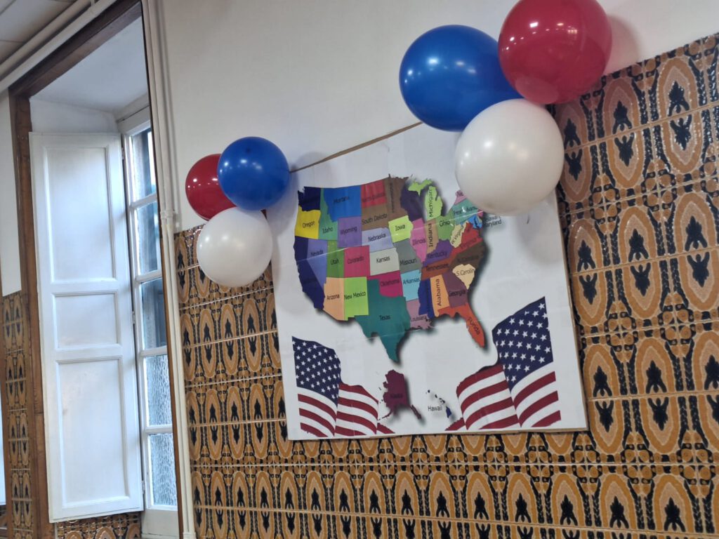 Hoy, los alumnos de Educación Primaria han celebrado el Día de EEUU de una forma muy especial en el comedor del centro.